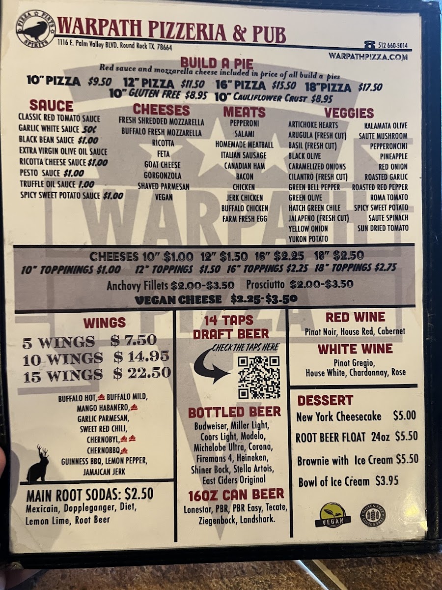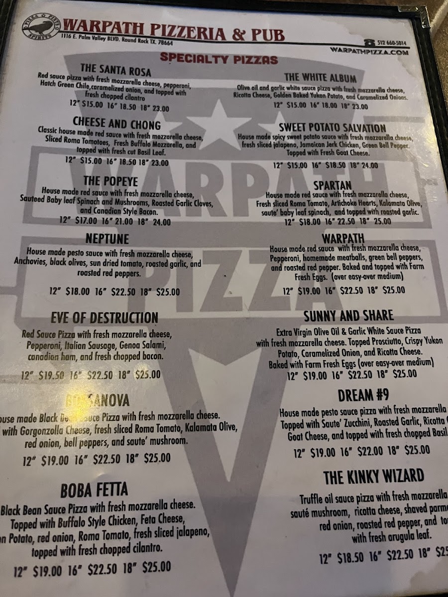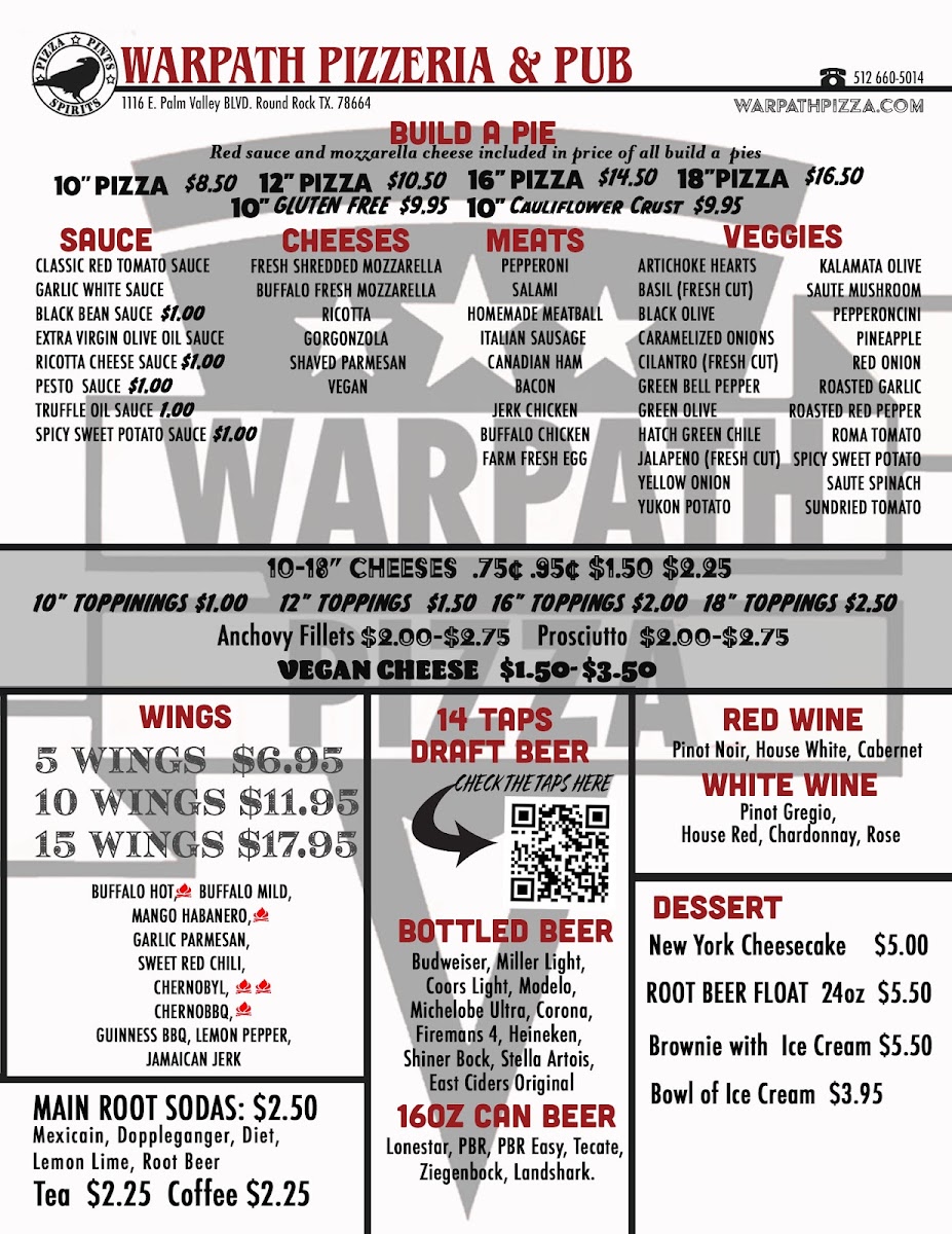 Introducing WARPATH PIZZA & PUB, a vibrant culinary destination in Round Rock, TX, at 1116 E Palm Valley Blvd. This charming eatery offers a diverse menu, with standout options including fresh salads, signature pizzas, and tantalizing wings that cater to various tastes.